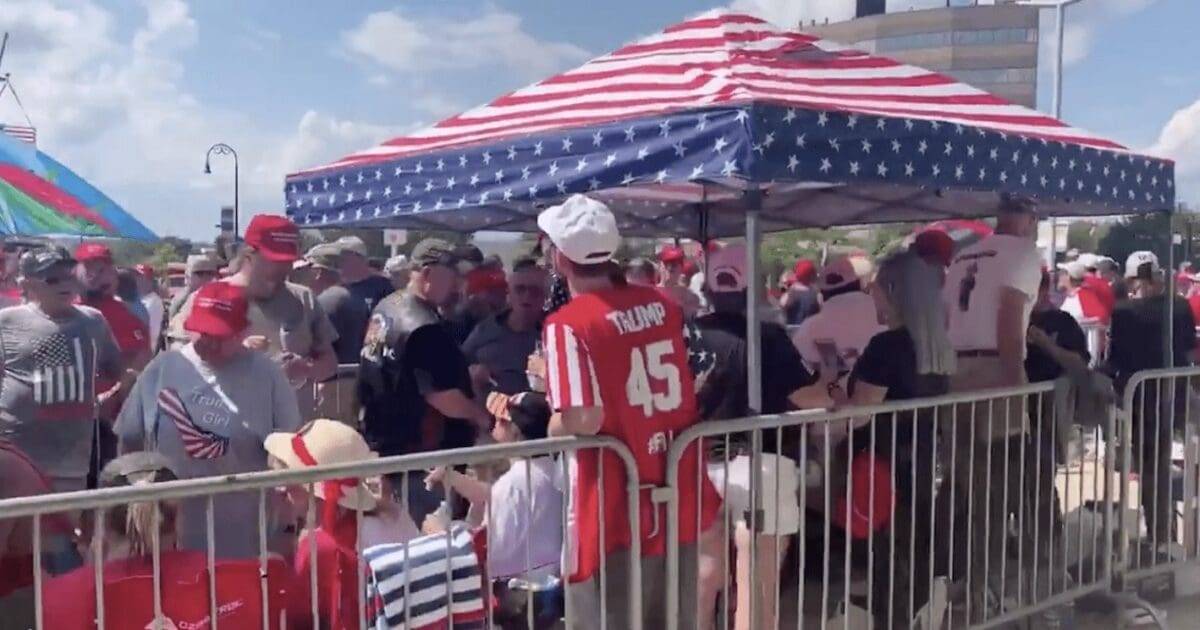 People were in line Wednesday morning ahead of President Trump’s campaign rally in Manchester, New Hampshire Thursday night. The event is attracting both fans and critics of the president.