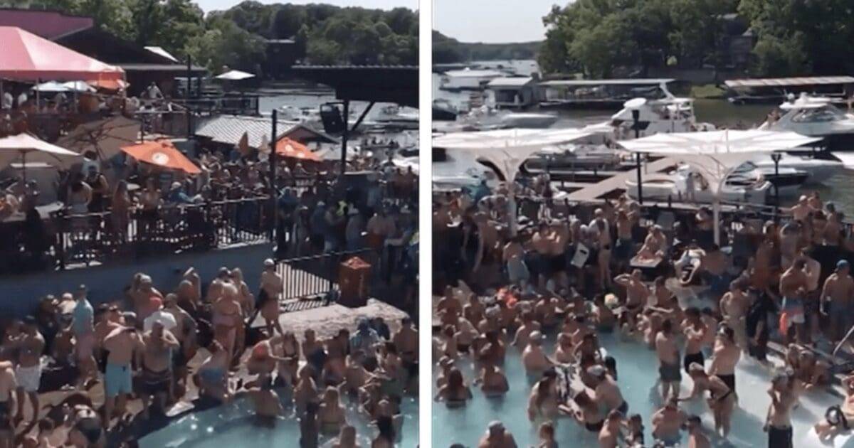 Video posted by a reporter shows partiers crowded together in a pool at the Lake of the Ozarks, Missouri, this Memorial Day weekend.