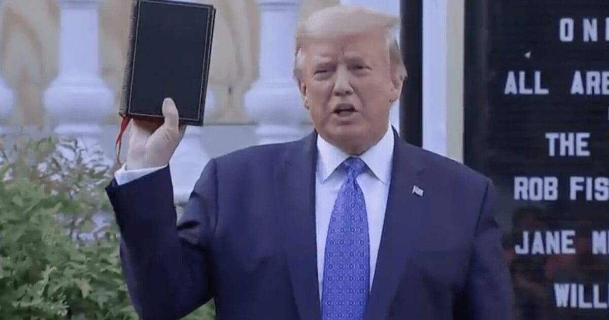 Trump, standing alone in front of cameras, then raised a black-covered Bible for reporters to see.