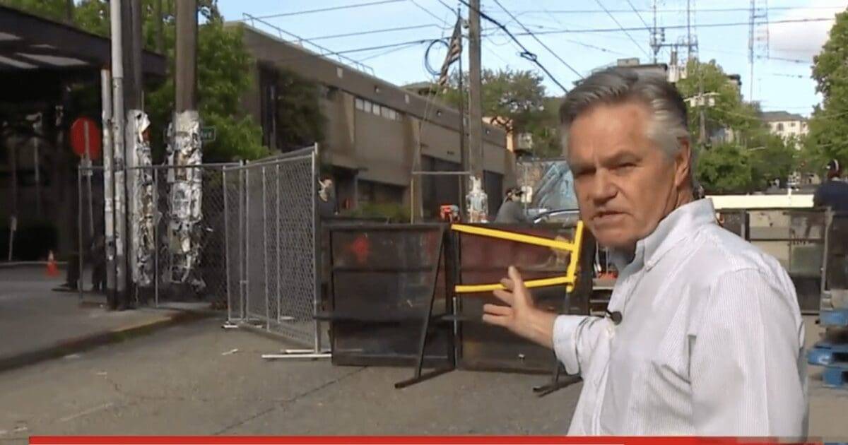 Here's an AP reporter live on the scene, walking you up to see the CHAZ Border Wall.