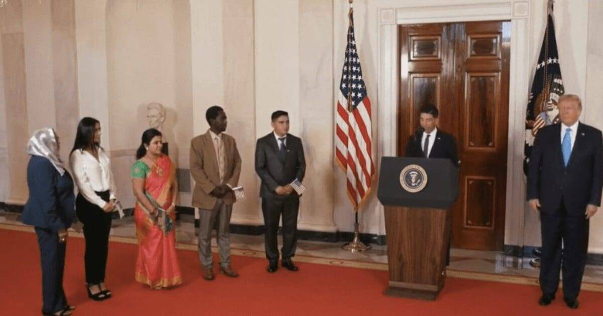 “Today, America rejoices as we welcome five absolutely incredible people into our great American family,” ]Trump said after the ceremony. “You are now fellow citizens of the greatest nation on the face of God’s Earth. Congratulations. Great going. You followed the rules, you obeyed the laws. You learned your history, embraced our values and proved yourselves to be men and women of the highest integrity.”