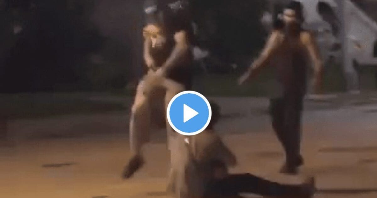 Watch below in the short clip as you see two ANTIFA thugs closing in on Kyle who is seated.
