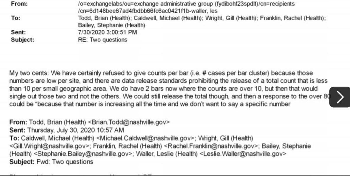 Neither the health department nor the mayor’s office would confirm the authenticity of the emails but councilmember Steve Glover had a Metro staff attorney inquire. Here’s the official answer: