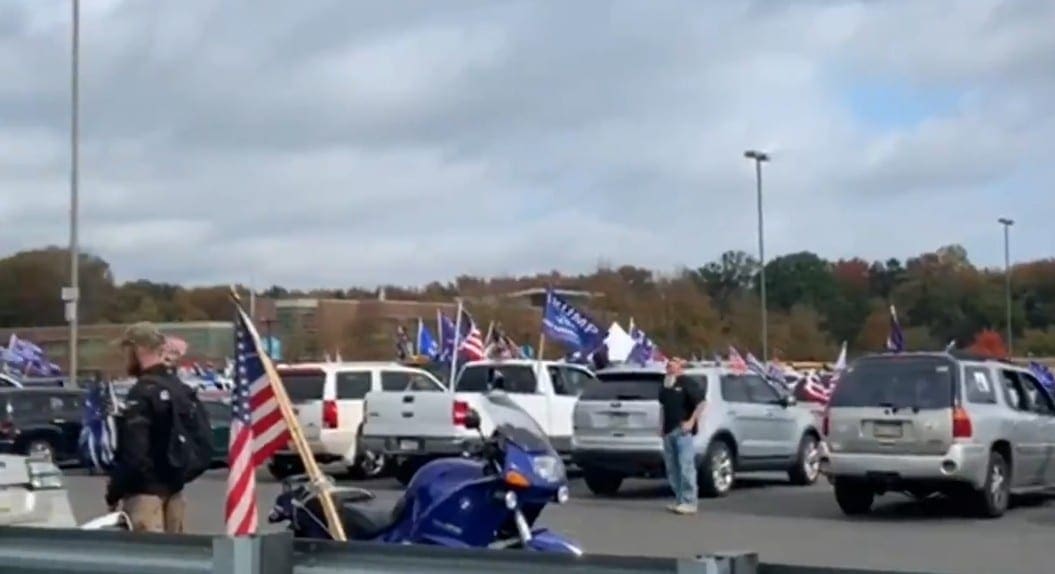 He was referring to scores of fans of President Trump, driving pickup trucks and SUVs draped with American flags and campaign banners, who invaded a nearby parking lot — within earshot of the candidate — to honk horns and try to shout the Democrat down.