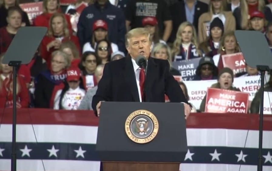 "A lot of people, friends of mine, say, let's not vote… But if you do that, the radical left wins. … You're angry because so many votes were stolen, it was taken away…If you don't vote, the socialists and the communists win"—Trump rallies for Perdue and Loeffler in #Georgia pic.twitter.com/Q0ufS0C9zf