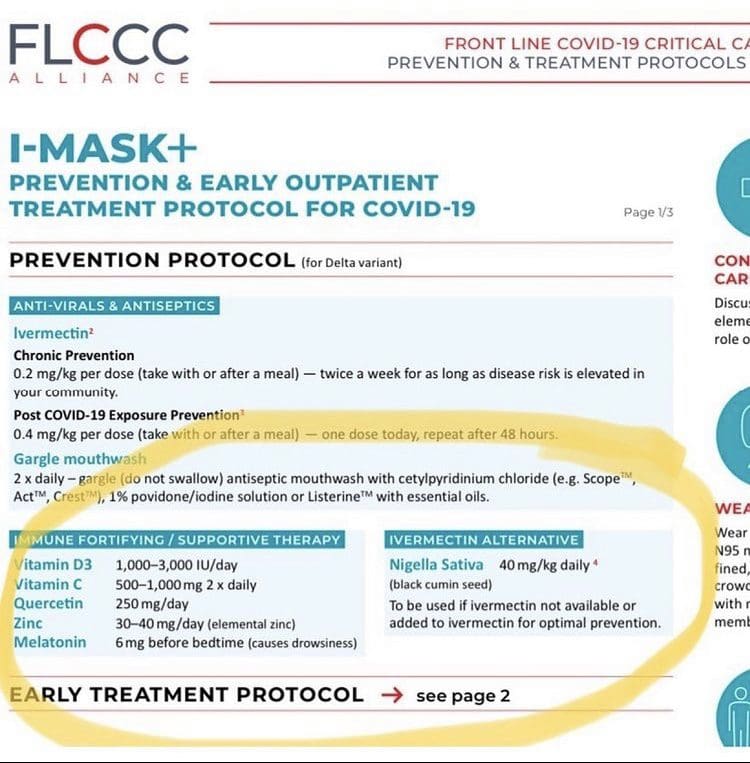 That’s why I want to update you on a change to the FLCCC Alliance I-Mask+ Prevention & Early Outpatient Treatment Protocol for COVID-19.