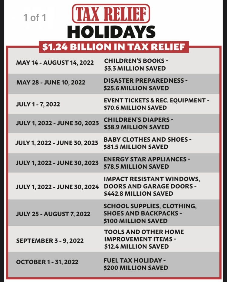 The legislation I signed today will provide Floridians more than $1.2 billion in tax relief on gas, diapers, school supplies, tools for skilled trades, event tickets and much more.