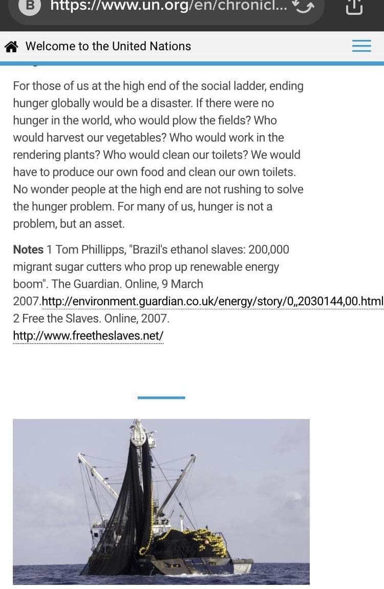Originally published in 2008, the article, titled ‘The Benefits of World Hunger’, was recently reposted to the UN’s Chronicle magazine.