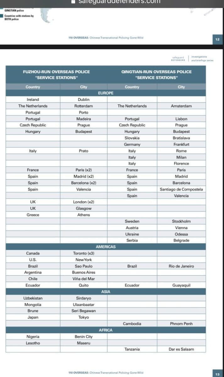 Page 13 of the Safeguard Defenders PDF file lists the overseas police “service stations.”