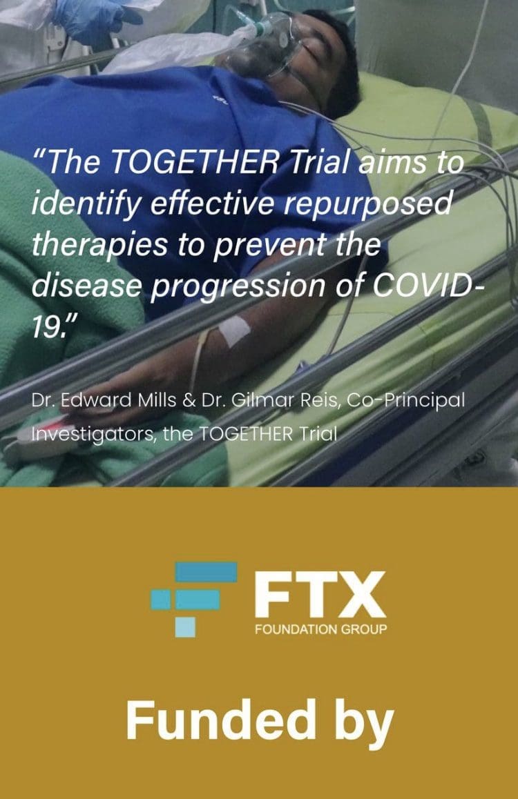 “We are incredibly honoured to receive this award and to work with the FTX Foundation. The TOGETHER Trial is truly an international collaboration and this award is a tribute to the entire team and also the patients who participated,” said Dr. Edward Mills, Co-principal investigator, TOGETHER Trial, Professor, Health Research Methods, Evidence and Impact, McMaster University. “COVID-19 is an unprecedented modern-day pandemic that called for a bold, novel and innovative approach. Partnering with innovative thinkers at the FTX Foundation allows the rapid expansion of our trial that will have major benefits to public health around the world. With the support of the FTX Foundation, we can now also start evaluating drugs for future pandemics.”