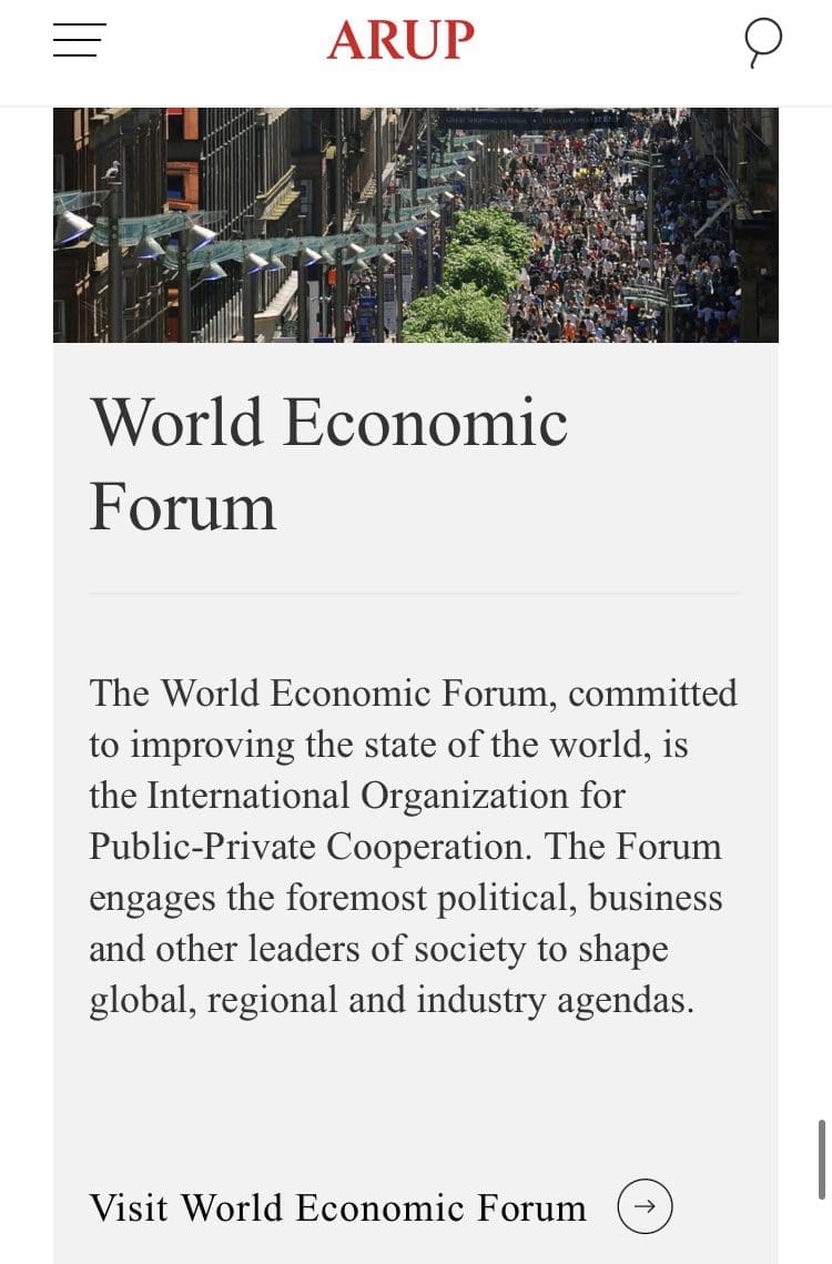 Unsurprisingly, the World Economic Forum is one of the listed partners of Arup.