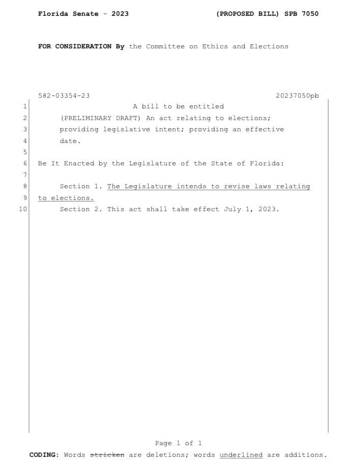 (PRELIMINARY DRAFT) An act relating to elections; providing legislative intent; providing an effective date.