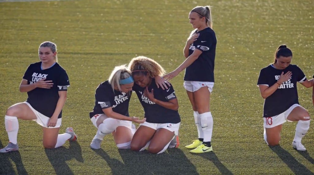 U.S. Soccer player Rachel Hill has released a statement for why she stood for the National Anthem.