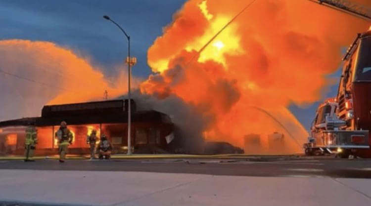 A dramatic fireball destroyed M & E Seed and Grain Co. in Prosser and left one person with burns. “A smoldering pile of twisted metal...